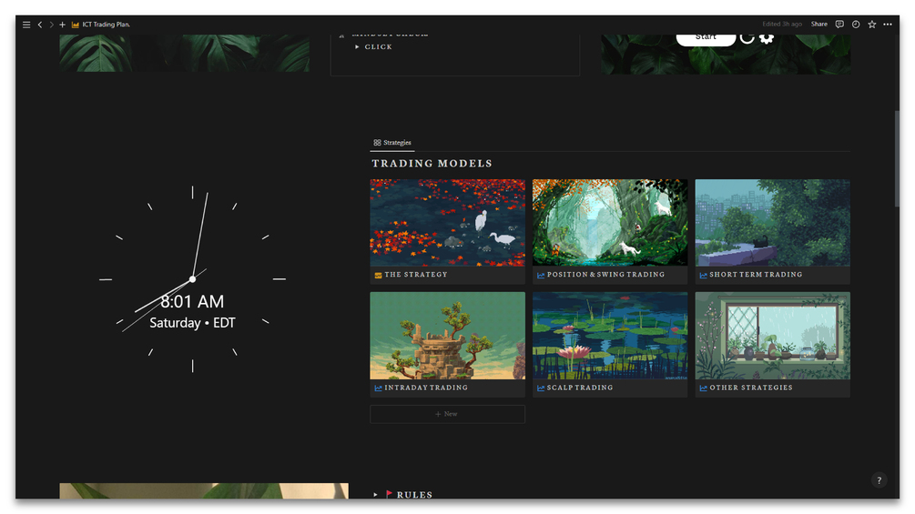 This notion template was made after countless days and hours of research, studying and experience in using Inner Circle Trader (ICT) Concepts or Smart Money Concepts (SMC). It also includes things I learned from other ICT students, study notes, important key points, simplified explanations of analysis methods and also things I discovered myself.