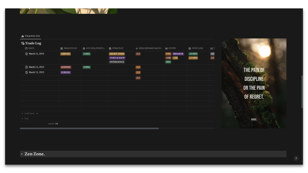 - A "Zen Zone" which allows you to keep meditative sounds played in the background while you analyze. This will help you to stay focused and disciplined.